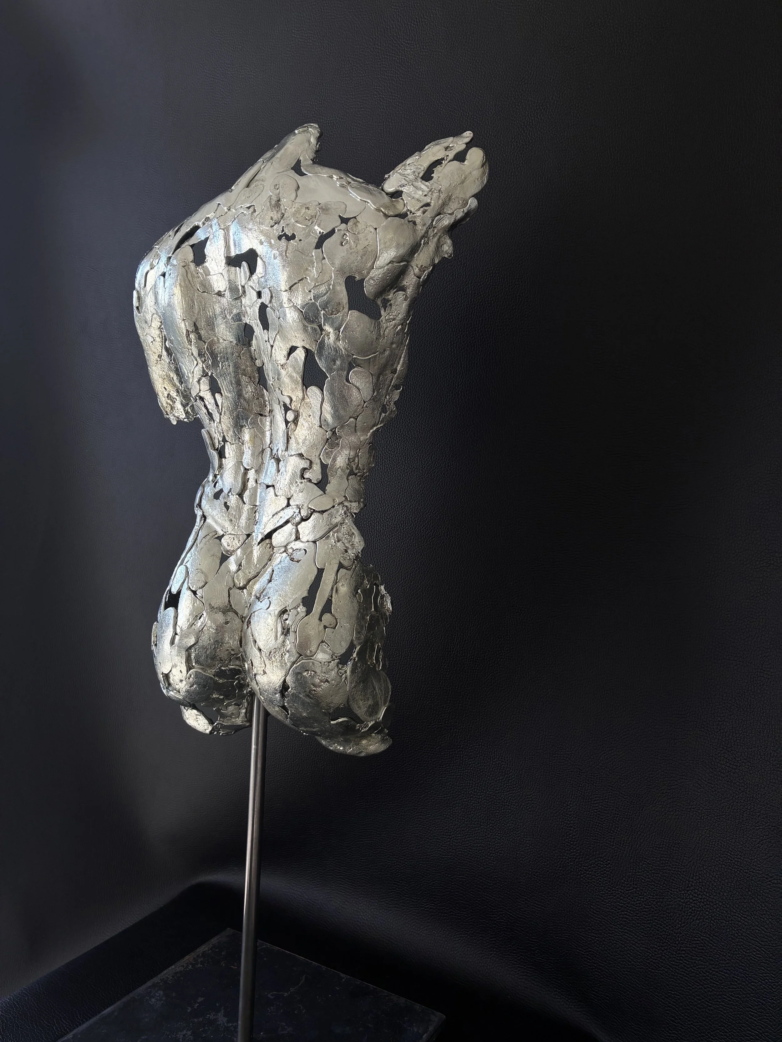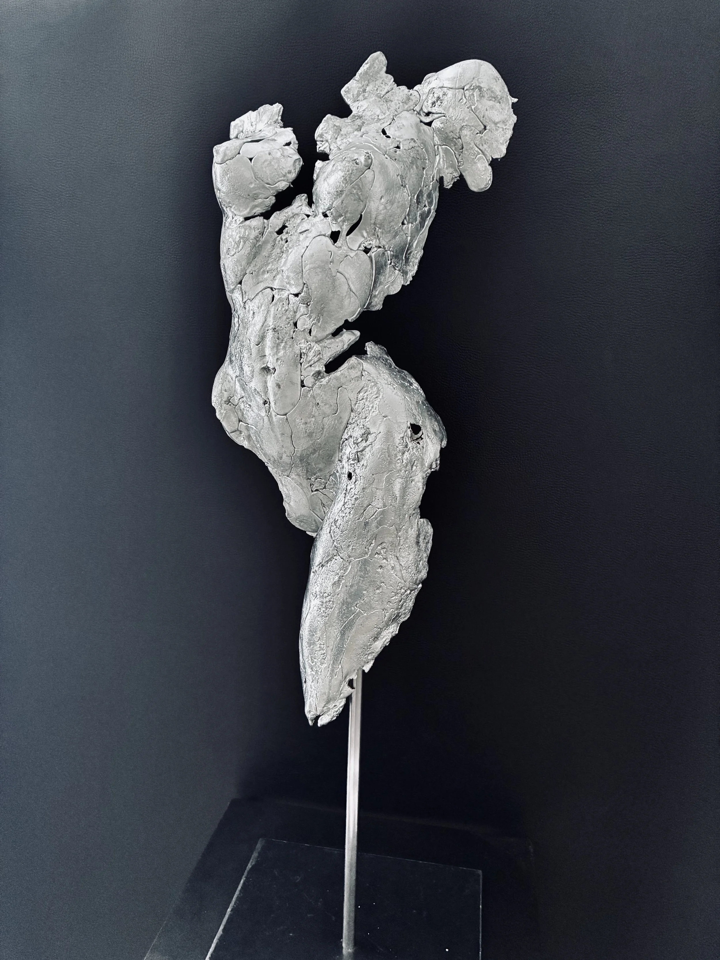 Je crée désormais des sculptures en étain, réalisées à partir de moules originaux que je conçois et fabrique moi-même. Chaque pièce est issue de ce processus artisanal, garantissant une œuvre entre précision du geste et liberté de la forme.